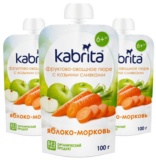 Пюре Kabrita яблоко-морковь 100 г 6 шт. с 6 месяцев