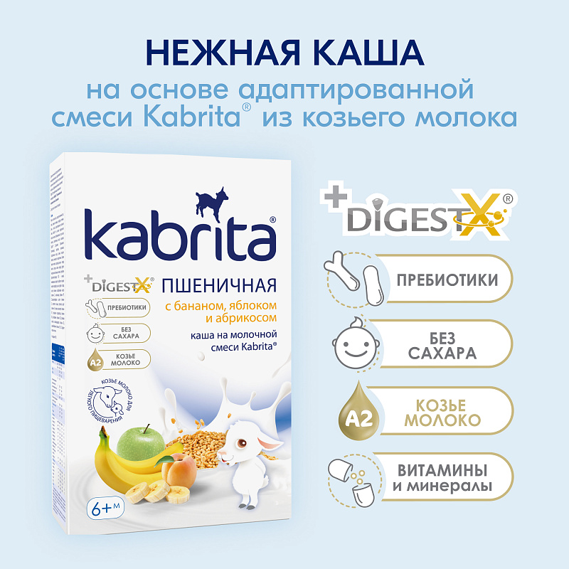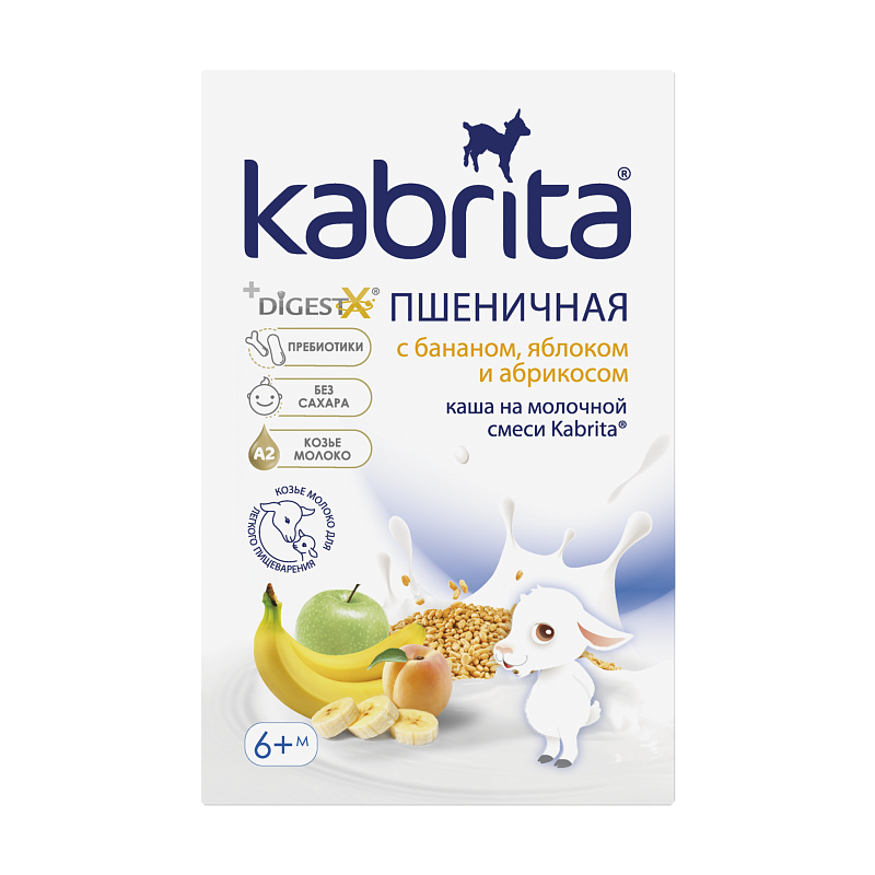 Каша Kabrita® пшеничная с бананом, яблоком и абрикосом с 6 месяцев ОСГ